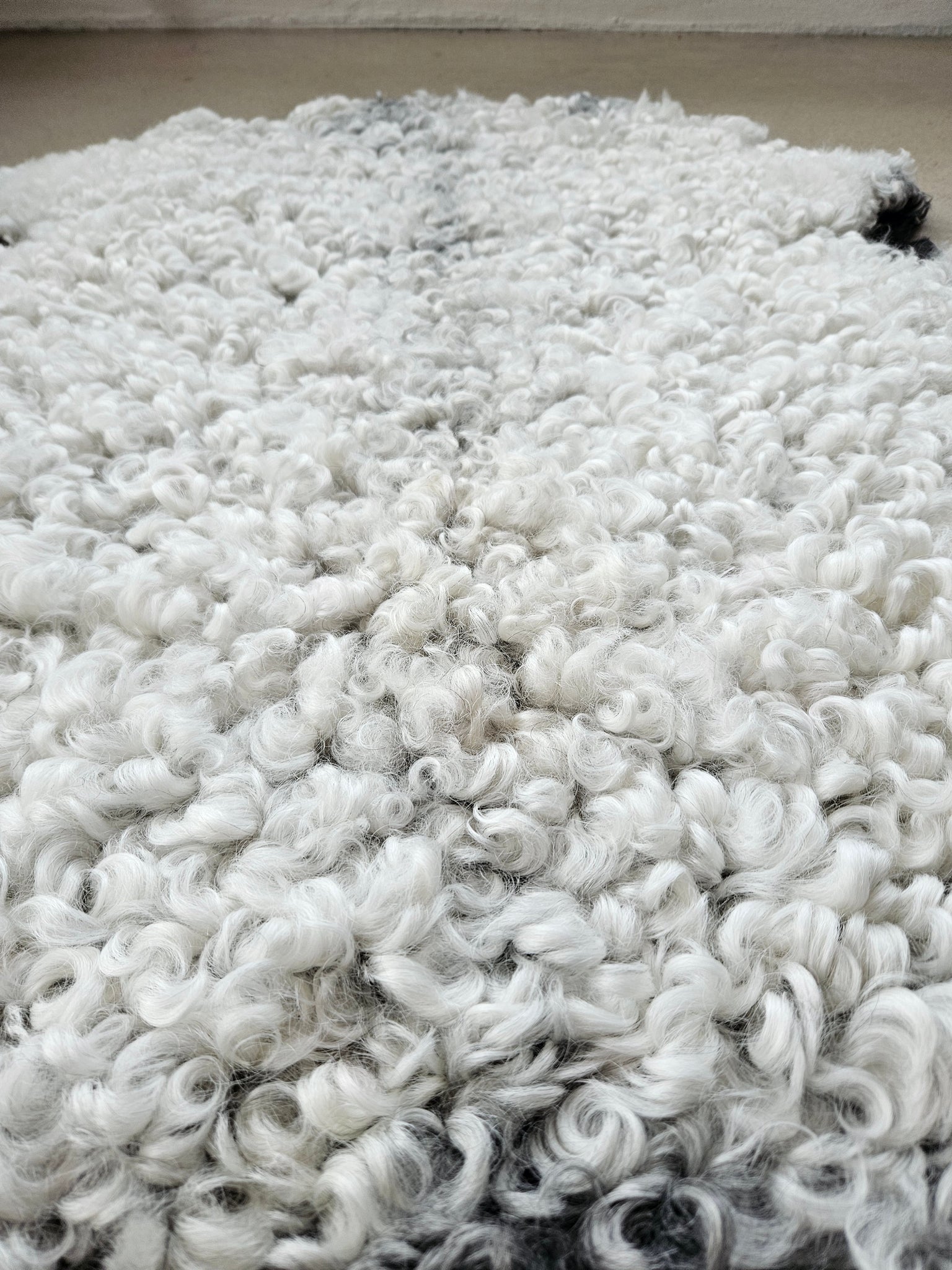 Ett ljuvligt vitt mindre tackskinn med lite gråa partier, ett tungt skinn med en rustik lock.